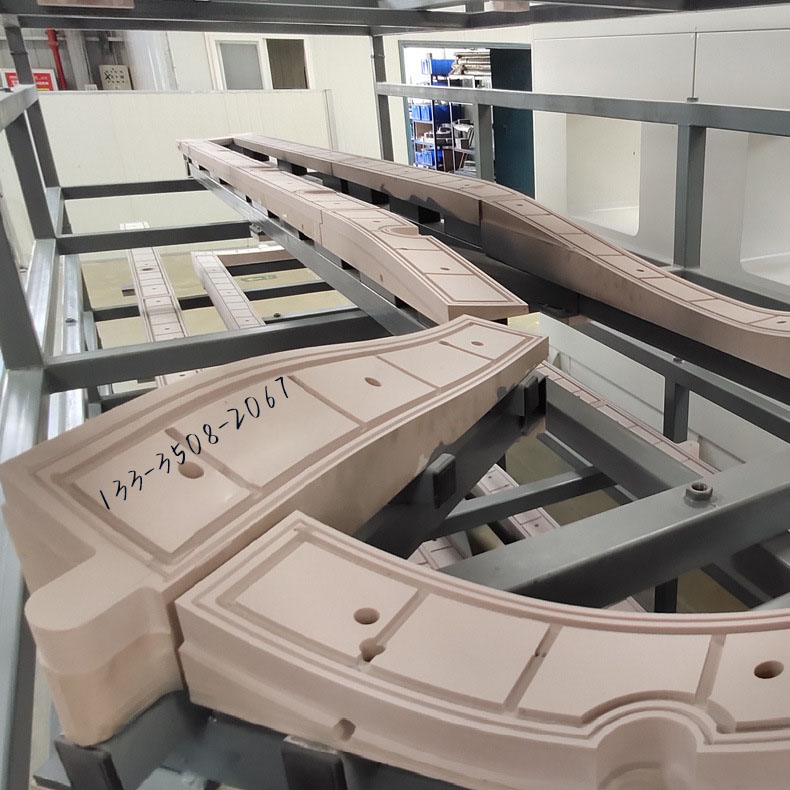 2、应用场景:非金属龙门加工中心主要用于汽车模具、广告雕刻、实木家具等非金属材料的雕铣加工,针对泡沫、工程塑料等轻质、低硬度材料雕铣加工;动梁式五轴加工中心具有超大加工行程,针对游艇模具、轨道交通车裙板、车边梁等大型、超大型加工件进行雕铣加工。材料基本都是相同的,都是针对非金属材料的高速雕铣加工,譬如塑料、代木、厚片吸塑件等非金属材料的加工。